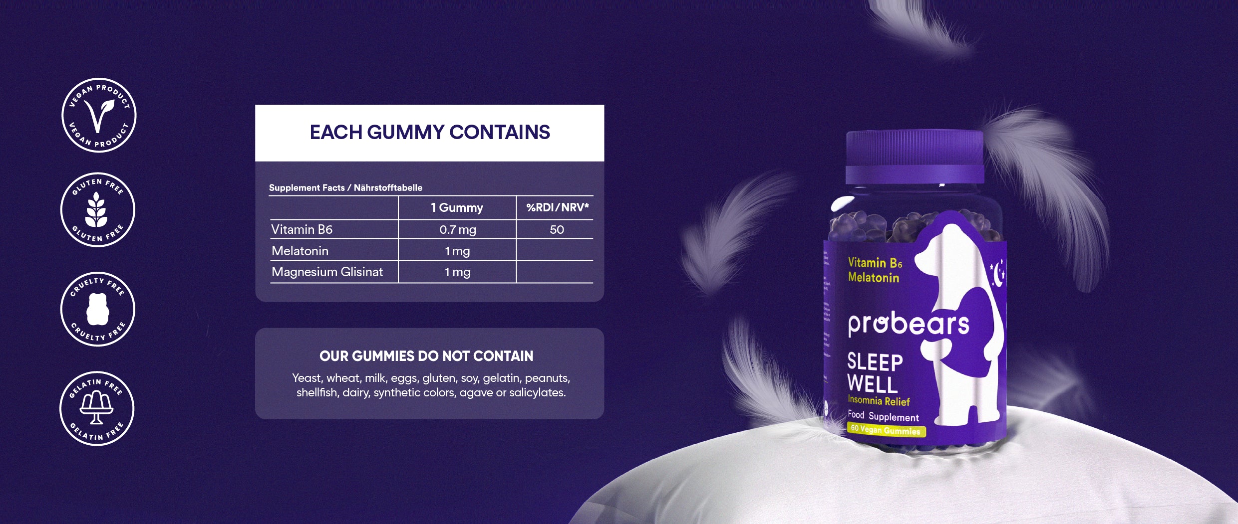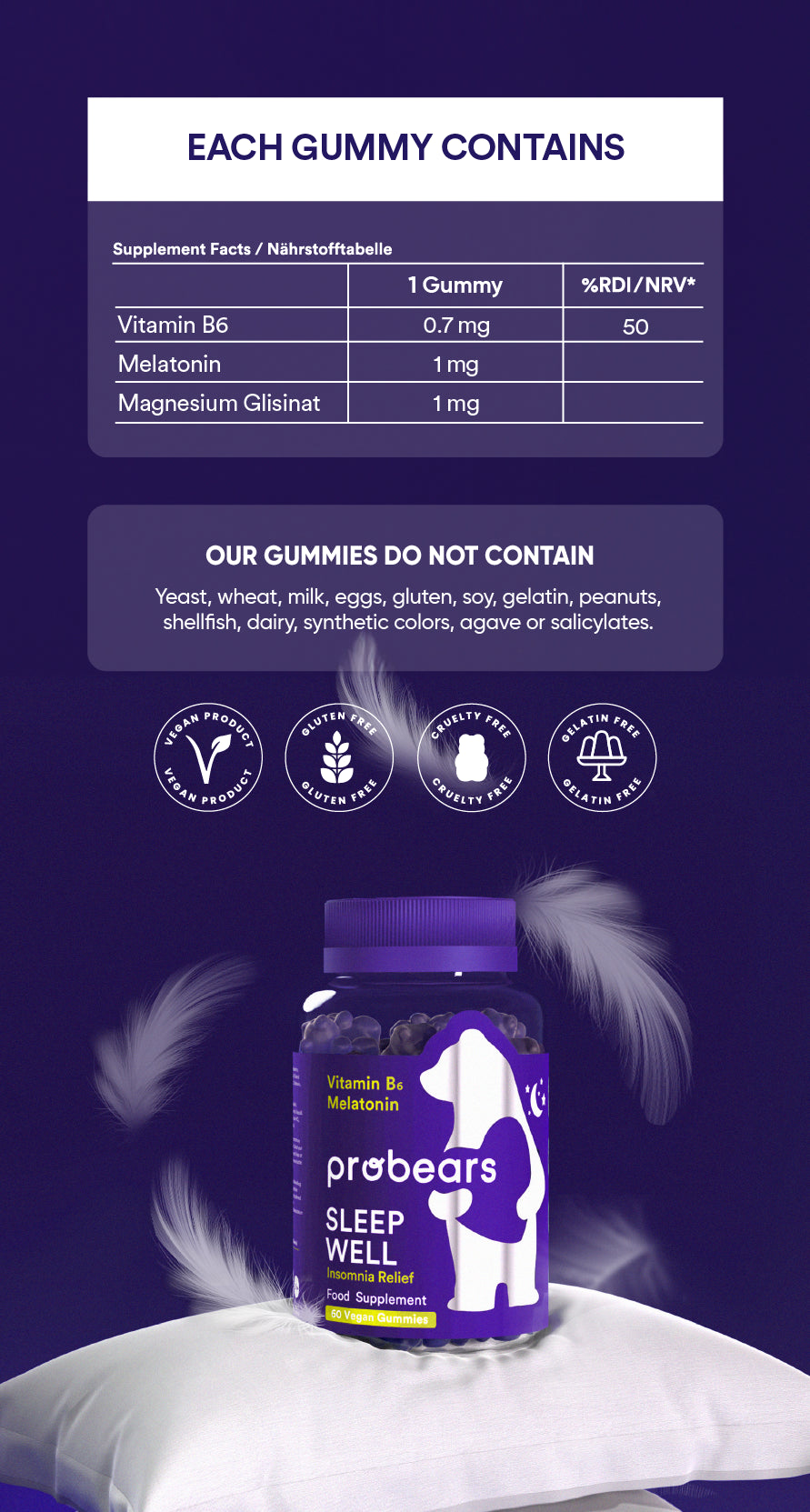 All you need is a good night's sleep. And we've just got the solution for you - Sleep Well Gummy Bears! These delicious gummies not only taste great but also help regulate your sleep-wake cycle, so you can wake up feeling refreshed and ready to take on the day.What sets our Sleep Well Gummy Bears apart from the rest is the powerful combination of ingredients that promote optimal regeneration of body cells. With ingredients like melatonin and valerian root, these gummies work together to help you find the perfect sleep balance. Say goodbye to tossing and turning!