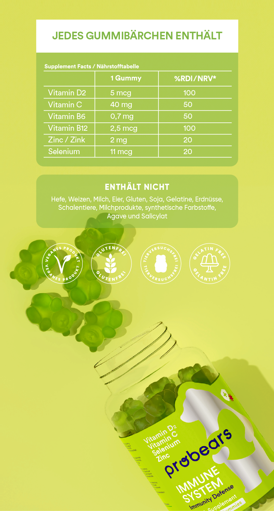 Nimm täglich ein Gummibärchen zu dir um dein Immunsystem zu stärken. Packungsinhalt: 60 Gummibärchen